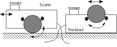 Les déplacements de la surface de la boule sont gérés grâce à des détecteurs de mouvements qui les traduisent en signaux numériques. L'un des détecteurs traduit les mouvements en abscisse et l'autre en ordonnée. C'est pour cela qu'ils sont orientés à 90 degrés l'un par rapport à l'autre. Il n'est donc pas nécessaire de faire bouger un trackball mais simplement la sphère contrairement a la souris. Certains trackballs utilisent un capteur qui réalise des clichés de la surface de déplacement de la boule. L'utilisateur utilise donc son pousse sur la partie émergé de la boule. Il est considéré comme dispositif de pointage car c'est un périphérique qui remplit 2 fonctions :