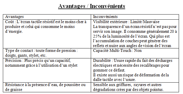 L’écran résistif est aussi utilisé pour :