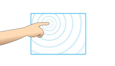 Il fonctionne grâce au contact de l’utilisateur. En effet, cet écran s’appuie sur les ondes acoustiques que crée le pointeur quand il touche l’écran. Ces ondes vont se propager à la surface de l’écran comme lorsqu’on jette un caillou dans un lac et seront réceptionnées par des capteurs aux quatre coins de l’écran.